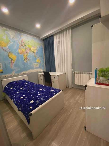 Продается трехкомнатная квартира в комплексе "Твой дом в Джикиа", с двумя спальнями, отремонтированная, меблированная и оборудованная техникой. В комплексе есть благоустроенный двор, парки, игровые площадки, развлекательные зоны, магазины, аптеки и пекарни. В комплексе предусмотрены парковочные места и есть служба охраны.
