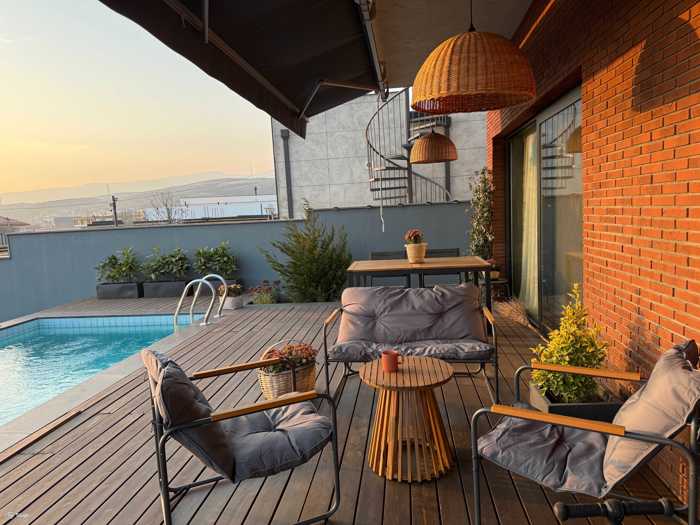 Продаётся частный дом рядом с озером Лиси в районе Лиси Основные характеристики: Дом: 215 м² Участок: 500 м² Спальни: 3 Гардеробная Санузлы: 2 Прачечная Гостиная: большая, типа студия (при желании легко разделяется) Вид – с обоих этажей открывается панорама всей Тбилиси Инфраструктура: гравийная дорога Коммуникации: Газ Электричество Интернет Magti Вода – собственная скважина Местоположение: лучший район рядом с озером Лиси — район Лиси 335 000 $