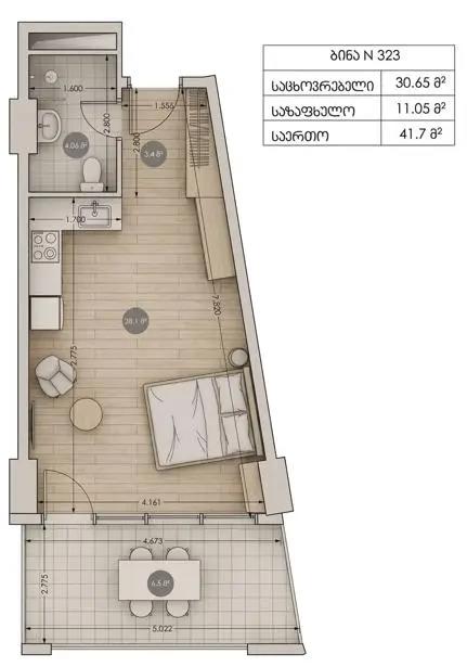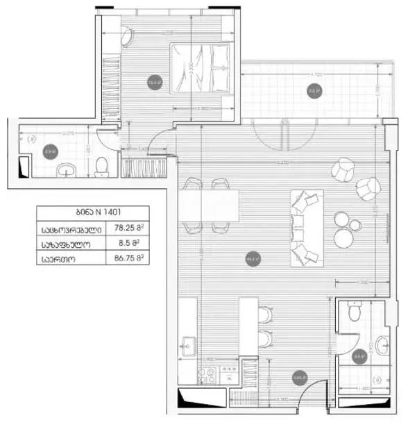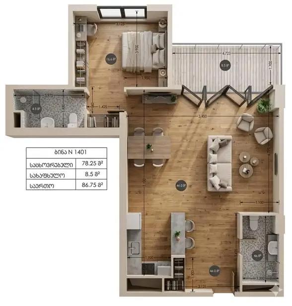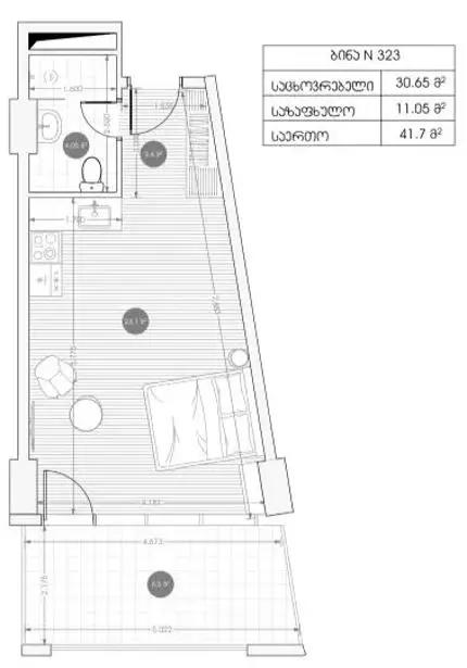 Квартира расположена на пересечении улиц Цамебули и Бочорман, рядом со станцией метро 300 Арагвели, в жилом здании премиум-класса под названием 'Блокс', отремонтирована, меблирована и оборудована. С видом на город. Внутренний и внешний периметр здания защищен камерами круглосуточно. Консьерж обслуживает здание. Идеально как для проживания, так и для инвестиций.
