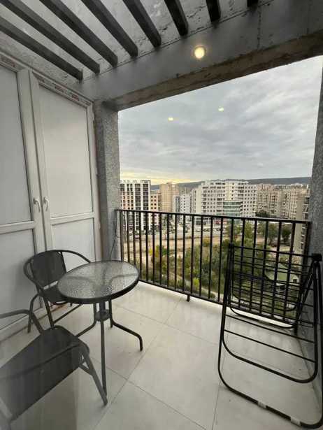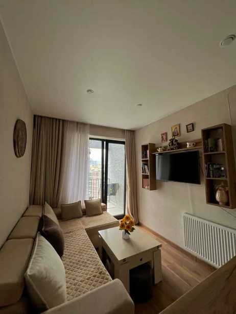 2 французских балкона. Теплый пол. Звукоизоляция. Это теплый дом. Немецкая кровать с пенопластовым матрасом. Все оборудование, которое необходимо клиенту. Супермаркет Калата и Спар перед домом. В 300 метрах: Карфур, Либре, Магнит, Два шага. TBC и Банк Грузии. Предоплата за 2 месяца.