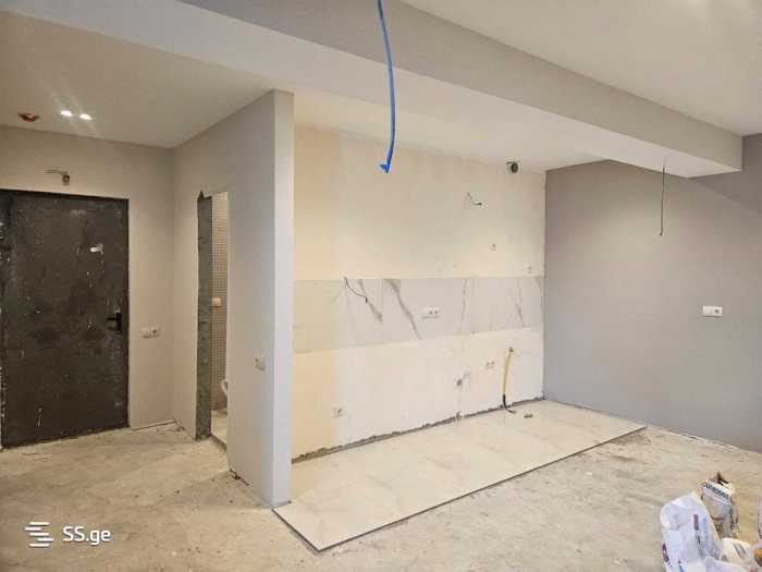 Продается квартира в новом завершенном проекте в Исани, по адресу улица Абусеридзе, дом 5. Этаж 12, 45.8 кв. м. В 5-7 минутах от станции метро Исани и Самгори. На последнем этаже. В ванной комнате плитка высокого качества, также плитка на полу в ванной, гостиной и на террасе, как видно на фотографиях, встраивается в смесь зеленого и местами белого каркаса.