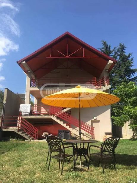 Сдается частный дом в Цкнети, на улице Чолокашвили. Дом трехэтажный, на первом этаже находится винный погреб с камином, на втором этаже расположены две спальни, а на третьем этаже также есть две большие спальни.