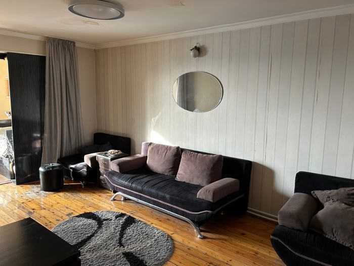 Срочно!!! Продается 3-комнатная квартира на высоком первом этаже с очень большой гостиной. 2 спальни, кухня, ванная комната и туалет отдельно, коридор. Во время ремонта можно увеличить кухню за счет уже увеличенного пространства. Квартира 80 кв. + 23 кв. подвал. В общей сложности 103 кв. Находится в очень тихом и спокойном районе, перед домом есть зеленый парк.