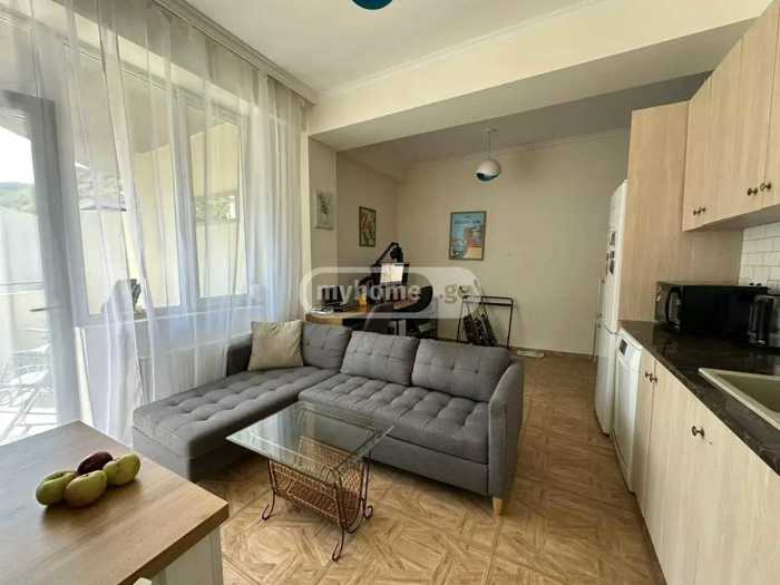 Сдаётся в аренду новая двухкомнатная квартира-студия в новом доме, в уютном месте, на улице Шатберашвили. В квартире выполнен качественный ремонт, она полностью меблирована и оборудована бытовой техникой (холодильник и посудомоечная машина Franke, вытяжка и плита Gorenje). В квартире есть балкон площадью 6 м², с которого открывается вид на горы.