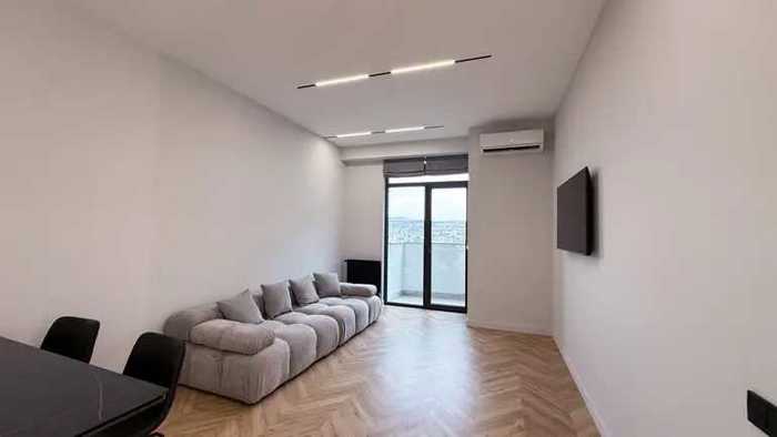 Сдается квартира площадью 64 кв. м. в новостройке в районе Сабуртало, на углу Вашлиджвари, рядом с автобусной остановкой, а именно над магазином 7 слонов, на 8-м этаже 12-этажного здания, с одной большой спальней, отдельной гардеробной и большой гостиной-студией, оборудованной всем необходимым, с балконом и прекрасным видом.