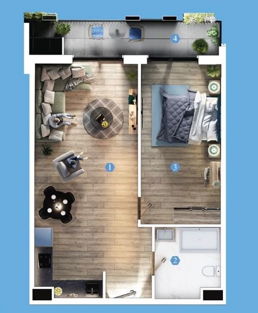 RiverFront Residence — это 29-этажный многофункциональный жилой комплекс. Квартира будет сдаваться в состоянии “белого каркаса”. Завершение строительства корпуса планируется в 2027 году. Проект предусматривает: открытый бассейн олимпийского стандарта, озеленённую общую открытую террасу площадью 2500 м², внутренний двор, из которых 1900 м² будет отведено под зелёные насаждения,детскую игровую площадку,офисные и коммерческие помещения,двухуровневый крытый паркинг с зарядками для электромобилей.
