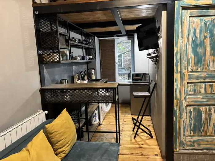 Инвестиционная недвижимость на продажу на проспекте Ахмесенебели, 📍 **Местоположение:** проспект Ахмесенебели 🏢 **Этаж:** 2/1 📐 **Площадь:** 46 м² Квартира состоит из: * Большой студийный салон + кухня * 1 спальня * 1 санузел * Мансарда с дополнительной спальней и кладовым пространством * Балкон (отделанный) ✅ Центральное итальянское отопление ✅ Кондиционер ✅ Паркет ✅ Мебель и бытовая техника ✅ Парковка во дворе 💰 **Цена:** 87 500 долларов США Квартира продается с мебелью и техникой.