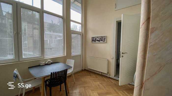 Продается большая квартира с высокими потолками в старом районе, переоборудованная в апартаменты, работающие как отель. Легко можно вернуть обратно в жилую квартиру, высота потолков 4.40. Общая площадь 135 кв.м, 2 камина, балкон, приватизированный чердак 160 кв.м. Отдельный вход с улицы, старая лестница. Тихая улица со всей инфраструктурой, 5 минут до супермаркетов, аптек, банков. М. Маржанишвили - 10 минут.