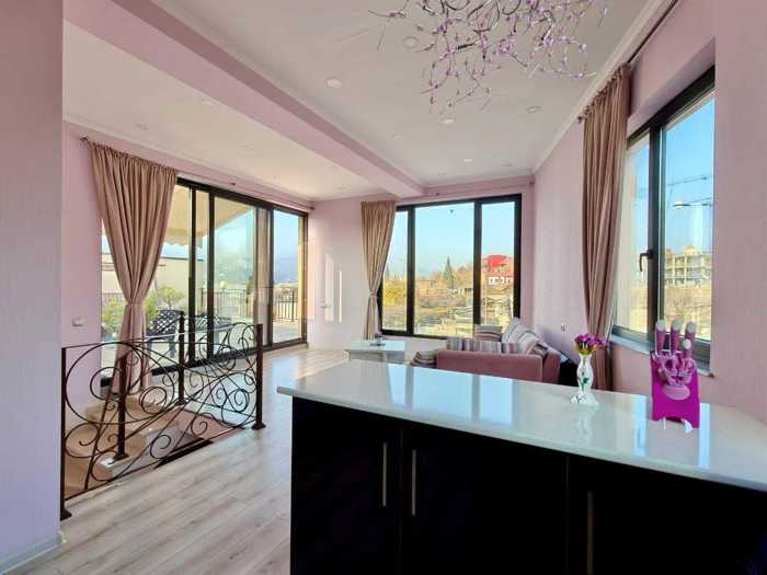 Квартира расположена рядом с отелем Sheraton Metekhi Palace, в новом здании, с новым ремонтом, имеет 2 светлых спальни, обе из которых имеют выход на балкон. С красивыми панорамными видами, меблирована и оборудована, это угловая квартира, с витражными окнами, очень светлая и уютная.