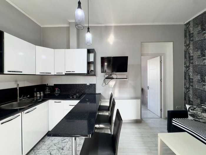 Сдается новая квартира нестандартного проекта на втором этаже двухэтажного дома. Общая площадь квартиры составляет 50 кв.м и включает 2 комнаты, в том числе