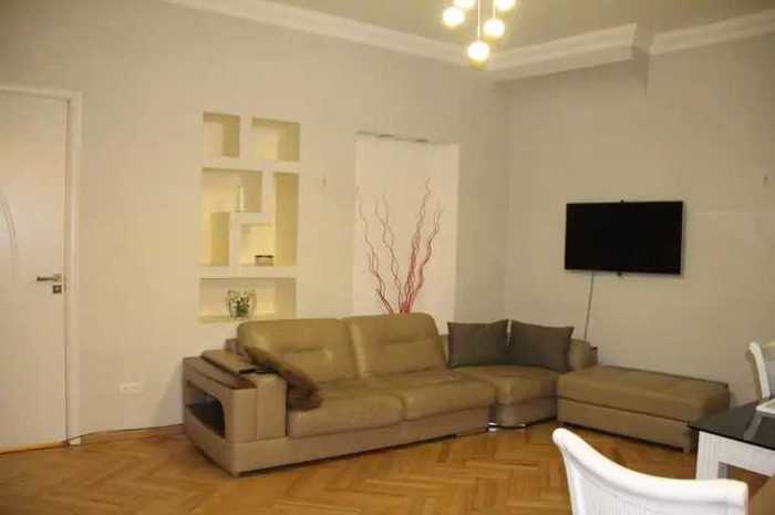 Квартира с высокими потолками, яркая, солнечная, студийного типа, с изолированной спальней. Находится на улице Арсена, на Мтацминде. Рядом с оперой, консерваторией, судом и художественной академией. Окна выходят на улицу, но это довольно тихая улица. Есть вид на фуникулер. В квартире 4 окна, одно из которых принадлежит ванной. Включает в себя всю необходимую мебель и технику: посудомоечная машина, стиральная машина, холодильник, кондиционер, центральное отопление..