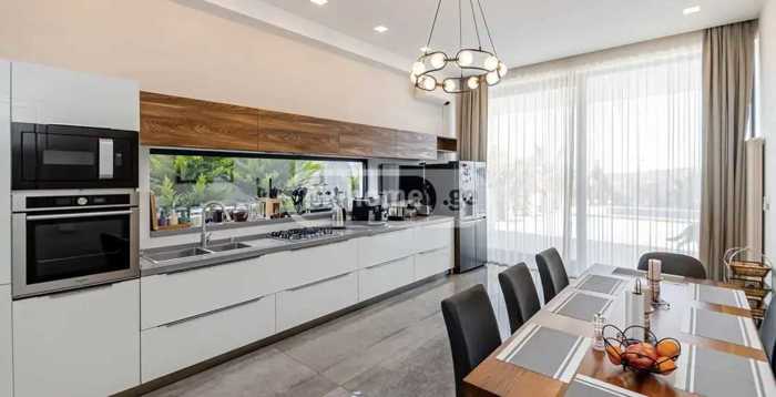 Построенный в 2022 году, ухоженный красивый дом. Удивительный двор с дорогой зеленью. Поливная система. Гараж на 2 машины и еще место для 2 машин на дворе. Лучшие мебель и техника. 3 спальни, шкаф, подвалы. Теплый пол в 80% дома. Выход на крышу с прекрасным видом оттуда. Кроме того, я продаю 600 квадратных метров земли рядом, возможно объединение участков и расширение дома. Я собственник.