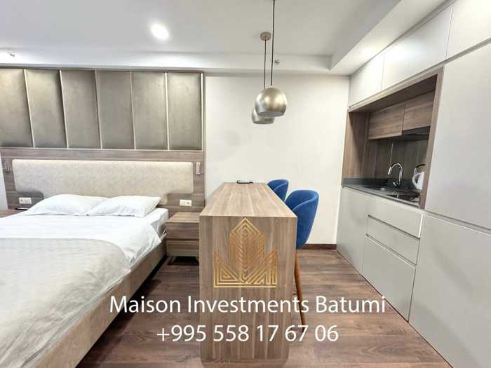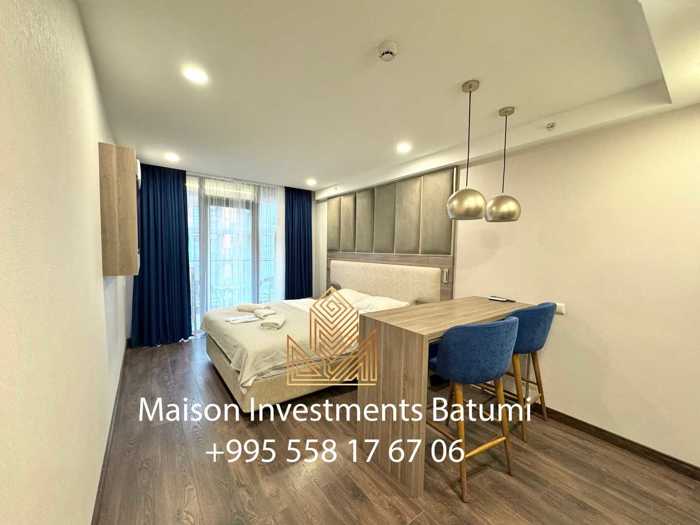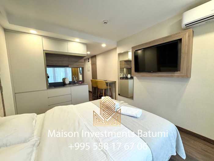 Продам студию в Wyn Residence на новом бульваре. Общая площадь 27 м2. Вид на море. Апартамент полностью укомплектован. __________________ Studio apartment for sale in the most popular touristic place in Batumi - Wyn Residence on the new boulevard. The apartment’s area is 27 m2. Fully furnished and equipped with.