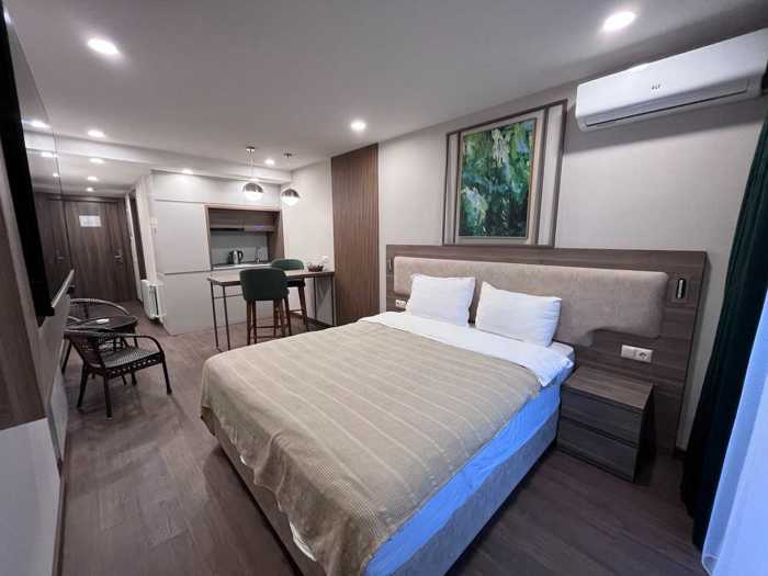 От 2х мес! Сдаю новую студию на ул. Адлиа, 2. в ЖК Радуга (RAIBOW) - 13 этаж, 32 кв. м. - отопление: газ 💥 - кондиционер - wi-fi, ТВ - Панорамные окна - посуда, бельё, чайник, утюг, сейф - До моря 3 мин. пешком. - Лобби, ресепшен, консьерж-сервис - Лифты OTIS - рядом магазины, кафе - Охрана и видеонаблюдение 24/7 Квартира свободна! Цена 350$, лето 450$ + КУ