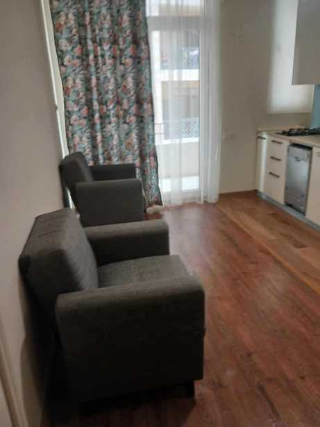 Сдается квартира в Гонио, на улице Андрея Первозванного 4, на первой линии пляжа, с одной светлой спальней, балконом, видом на море, со всей необходимой мебелью и техникой, 50 м2 на 4 этаже, цена: 800 долларов. Также сдается посуточно, цена: 150 лари