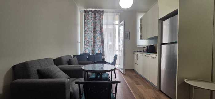 Квартира на продажу в Гонио, первая линия к морю, с евро-ремонтом. Одна спальня, 40 квадратов. Быстрое центральное отопление.