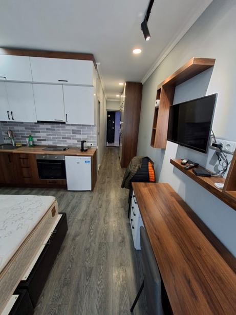 Студия 34.5 кв. м с прекрасными видами в Blue Sky, Шартава, 14 Свободна в марте 2026 года. Продается современная студия площадью 34.5 кв. м на высоком этаже престижного жилого комплекса Blue Sky. Квартира отличается удачной планировкой и панорамными характеристиками. Из окон открываются впечатляющие виды на море, горы, Аллею Героев и футбольный стадион – редкое сочетание, которое делает объект особенно ценным. Выполнен качественный дизайнерский ремонт с использованием современных материалов. Квартира оснащена центральным отоплением, полностью готова к проживанию или сдаче в аренду. 📍 Локация: один из самых востребованных районов города – удобный для жизни и привлекательный для инвестиций. Высокий спрос на аренду, ликвидный формат, престижный комплекс. Рядом ТЦ Карфур, аптеки, банки.