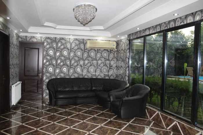 Дом полностью обставлен, с бассейном и очень красивым двором, где расположены две беседки: одна открытая, а другая с закрытым камином. Дом находится в десяти минутах от площади Свободы, также очень близко к дому расположен парк на горе Мтацминда.