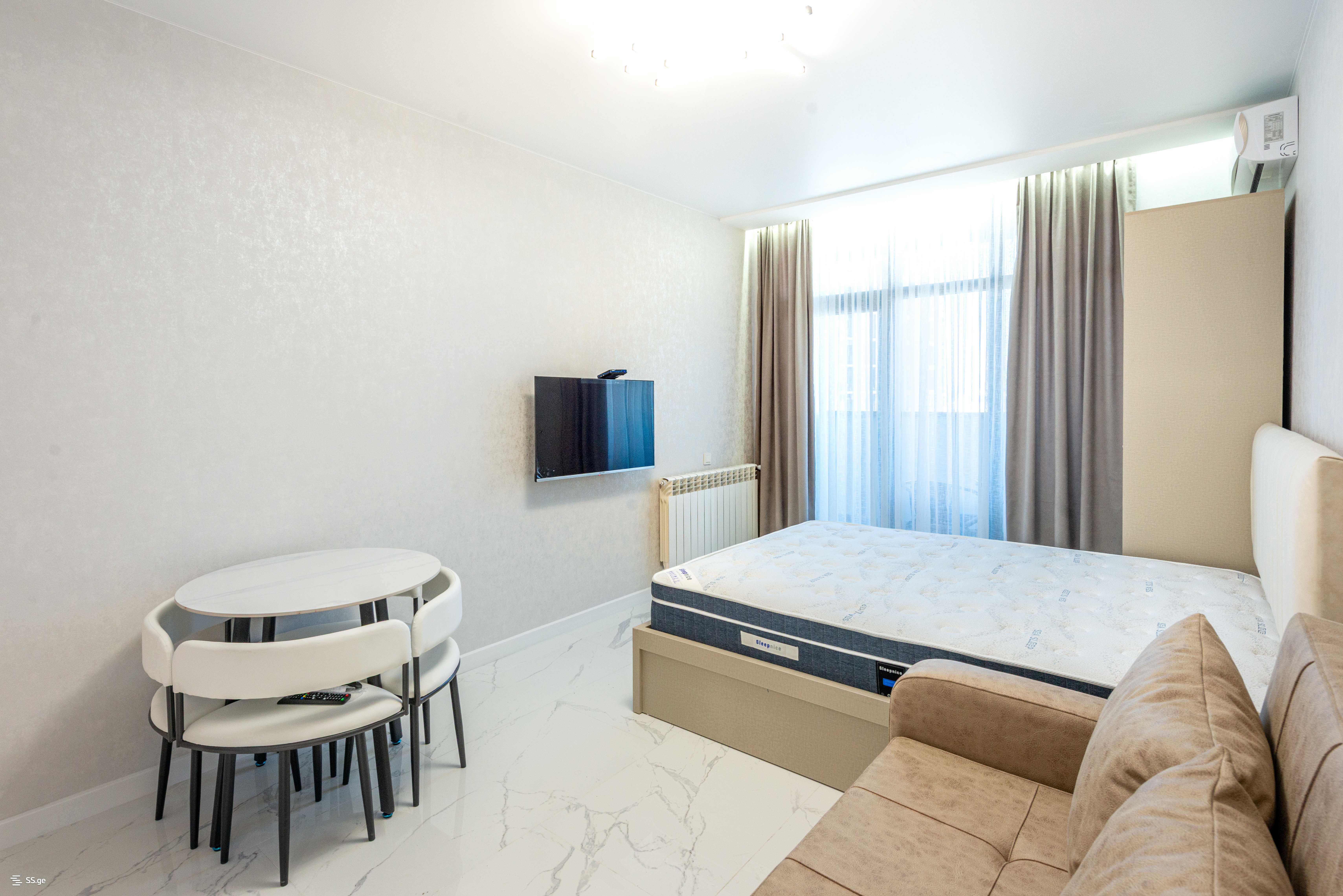 Сдам АБСОЛЮТНО новую красивую стильную студию в одном из лучших жилых комплексов Батуми на Аллее Героев с центральным отоплением.-Газовый котел, батареи. Стильный ремонт в светлых тонах. Первая аренда Престижный новый жилой комплекс