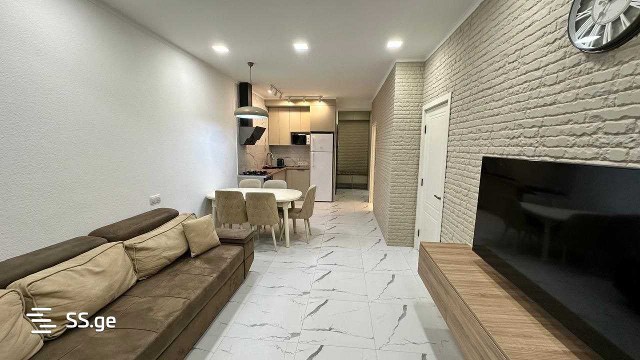 В квартире : 2 спальни, зал-гостиная, балкон и терраса, а также выполнен новый ремонт и есть вся необходимая мебель и техника.